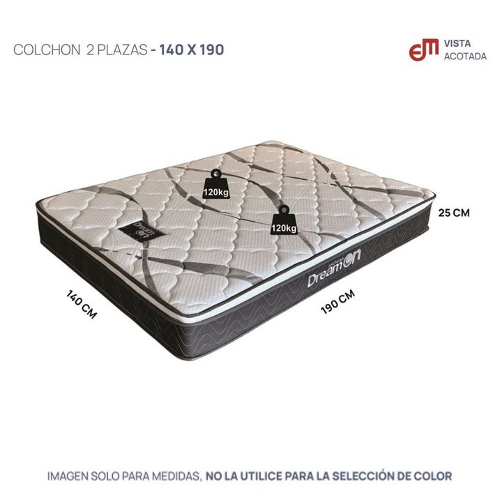 COLCHON EN CAJA + BOX DE MADERA MOSCONI 2 PLAZAS 57097 COLCHON DREAM ON CON BOX BENETHON COLOR TISSA