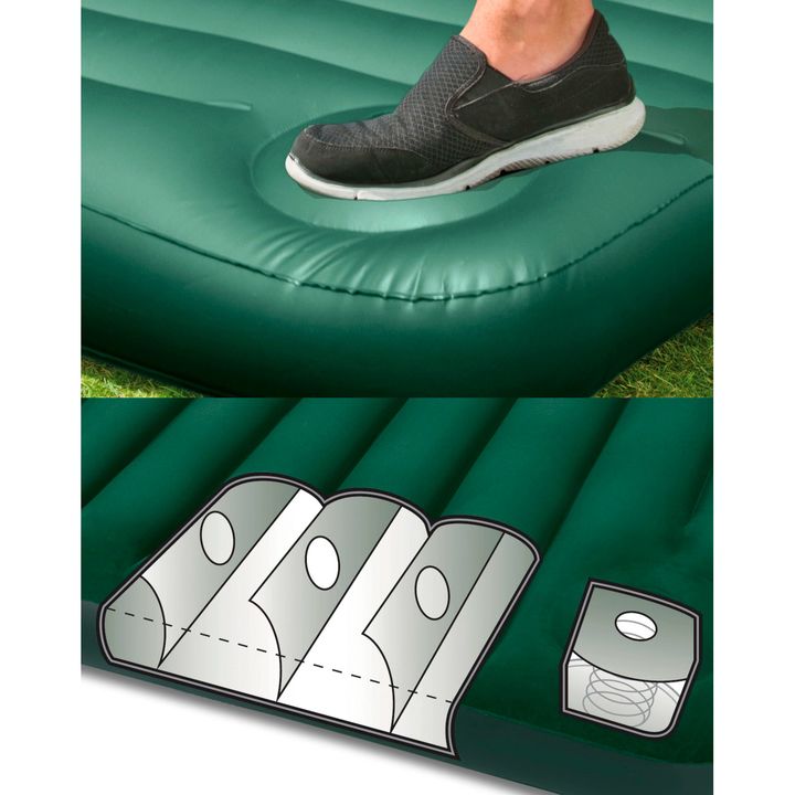 CARACTERÍSTICAS: - Marca: Intex - Plazas: 1 - Material: Vinilo - Tecnología: Fiber-Tech - Tipo de inflado: Manual o eléctrico (incluída) - Uso: Interior o exterior - Tiempo de inflado: 5 min - Peso máximo soportado: 273 Kg - Dimensiones (AnxAlxPr): 137 x 191 x 20 cm - Peso: 3,7 Kg CONTENIDO DE LA CA...
