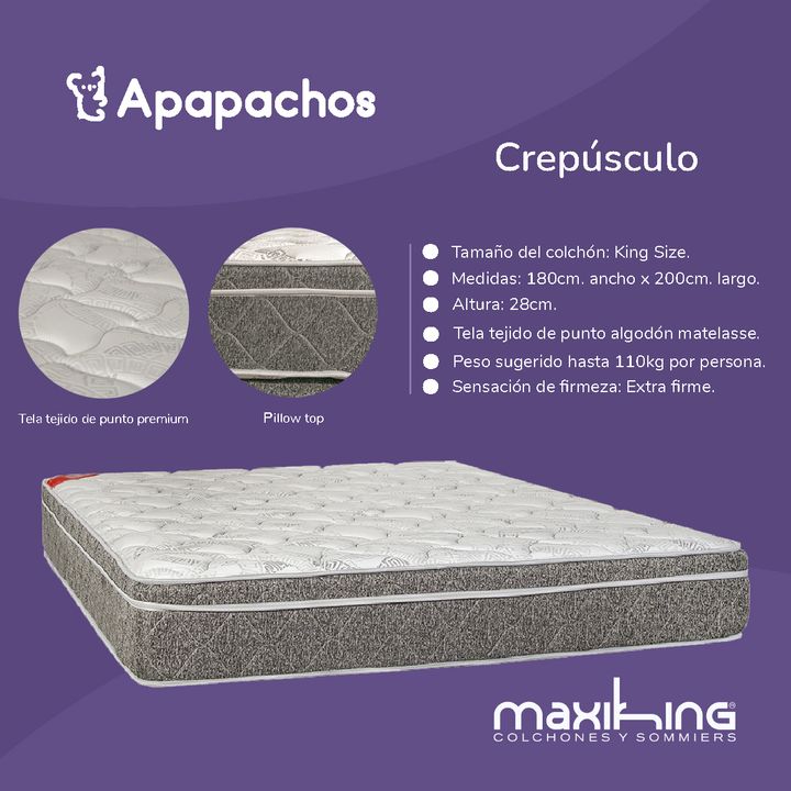 Colchon Maxiking Crepusculo King Size 180x200x28cm Espuma de Alta Densidad Pillow Firme