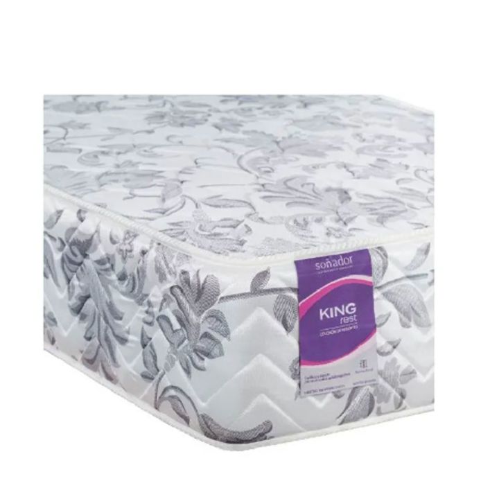 Colchón de dos plazas. Interior de Resortes Bonnel de Acero templado. Marco perimetral de espuma de Alta Densidad. Sistema One Side que evita tener que dar vuelta el colchón. Revestido en tela Jackard Matelaseada. Peso soportado por lado 85 kg. Medidas: Largo: 1.90 mts. Ancho: 1.40 mts. Alto: 0.22 m...