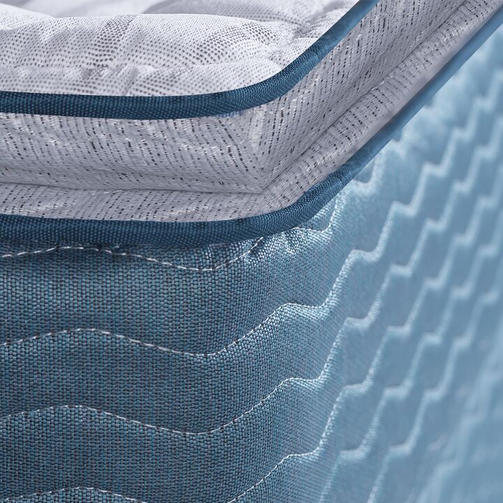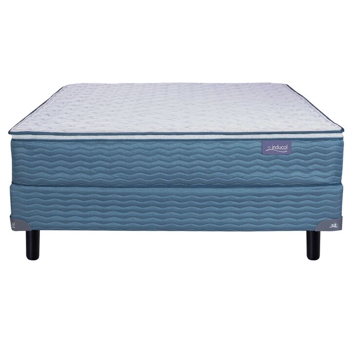 Colchon y Sommier Inducol April Azul Queen Size 150x190x24cm de Resortes Bonnell y Pillow Top de Jackard