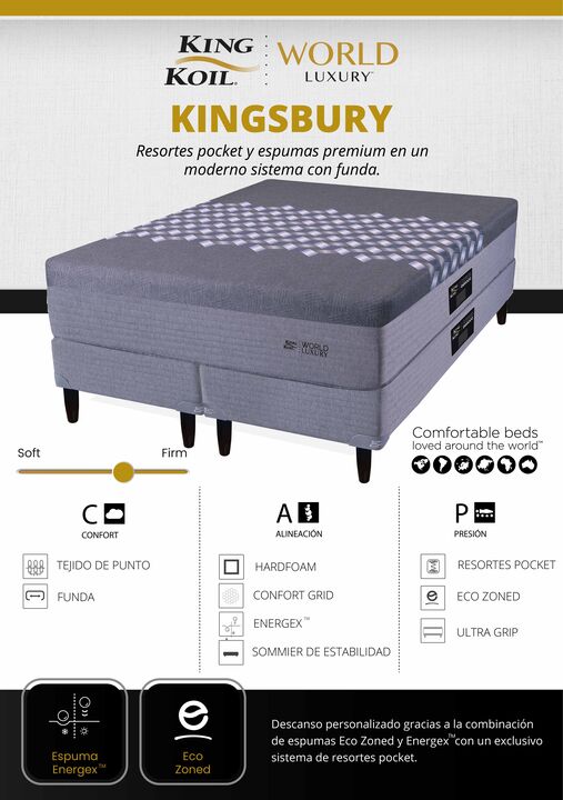 Descubre la excelencia en el descanso con la línea World Luxury de la prestigiosa marca King Koil, líder en el mercado global de colchones de alta gama.