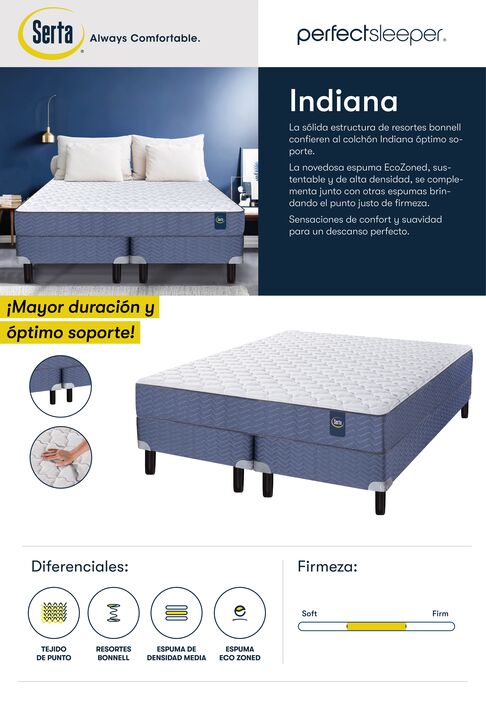 Descubre el colchón Indiana de la línea Perfect Sleeper de Serta, diseñado para proporcionar un descanso de calidad superior y duradero.