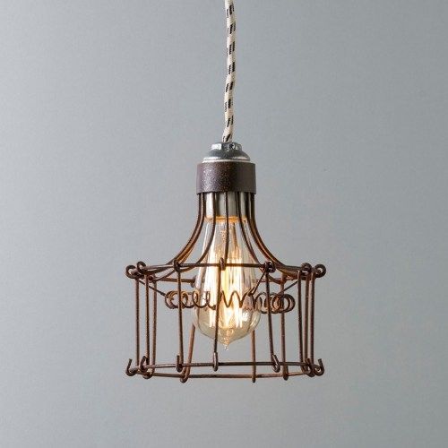 Lámpara colgante de alambre metálico para una lampara apto LED de 30cm de atura. Disponible en color negro u óxido.