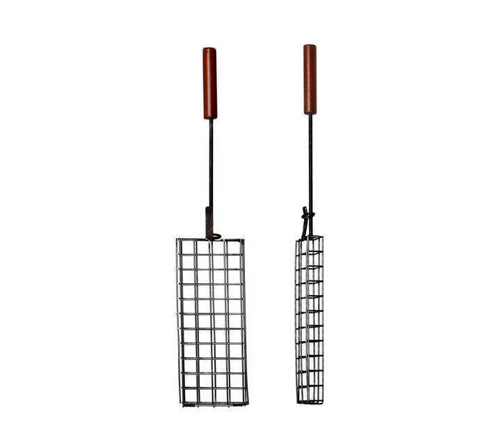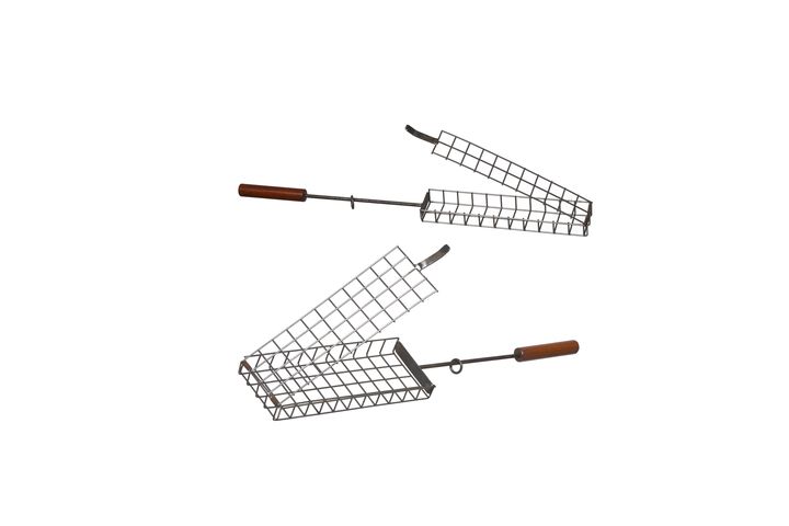 GRILLADOR GRANDE Y CHICO PARA PARRILLA IDEAL PARA COCINAR VEGETALES, CARNES O PESCADOS. PRODUCTO DE HIERRO RESISTENTE A ALTAS TEMPERATURAS (NO ESTA PINTADO, NO ESTA ENLOZADO) CON MANGO DE MADERA REALIZADO A MANO Y REVESTIDA EN LACA COLOR CAOBA.