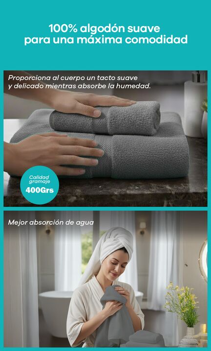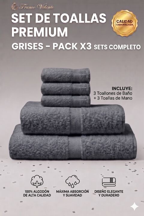 Equipá tu baño con la combinación perfecta de suavidad y practicidad. Con este Combo Exclusivo x3 Juegos Completos, llevas la calidad reconocida de Franco Valente a cada rincón de tu casa. La línea de 400 gramos es la favorita de quienes buscan una toalla liviana, altamente absorbente y, sobre todo,...