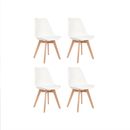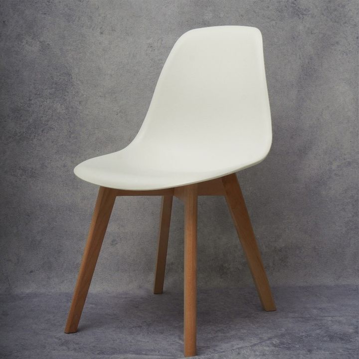 Sillas de diseño Eames, cuentan con asiento de polipropileno Blanco y patas de madera diseño escandinavo con punteras antideslizantes. resistentes. ESPECIFICACIONES Materia Casco: Polipropileno Profundidad: 47 cm Ancho: 47 cm Alto: 83 cm Soporta: 120 kg Alto del Piso al Asiento: 40 cm Material Patas...