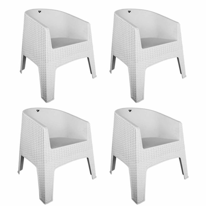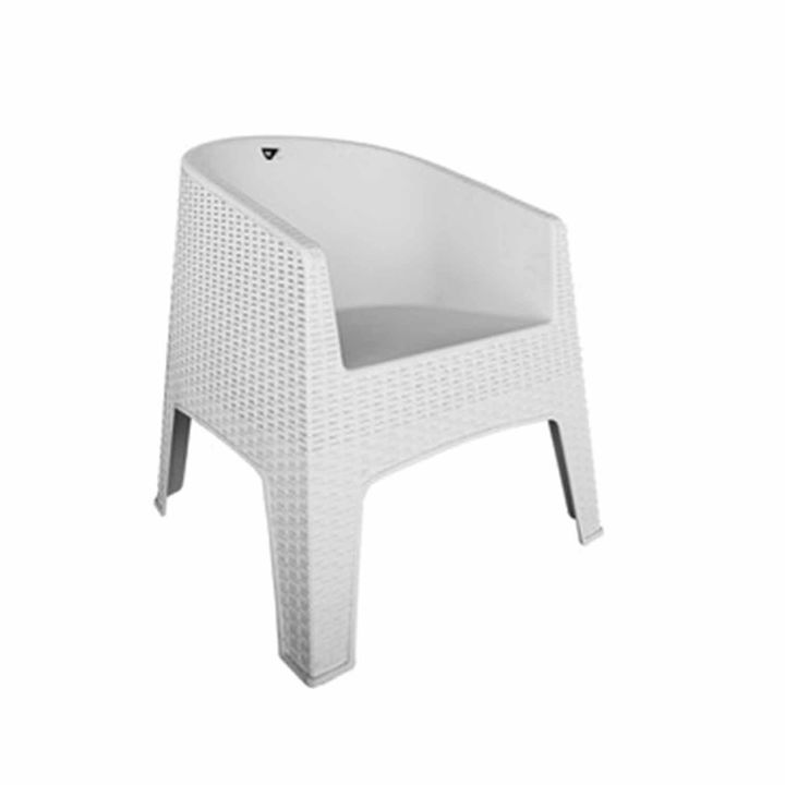 Sillon plastico estilo rattan, ideal para balcones o espacios al aire libre. Dimensiones Ancho 69.6 cm Alto 79 cm Profundidad 72.6 cm Peso 5 kg NO INCLUYE ALMOHADONES