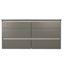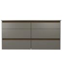 Cómoda de melamina de alta resistencia. Viene con dos regruesos de madera, en dos colores diferentes, para elegir la combinación que mas te guste. Los colores de estos regruesos son Nevado y Nogal. 4 Cajones de 63x20cm y 2 Cajones de 63x14cm con correderas metálicas. Interiores totalmente revestidos...