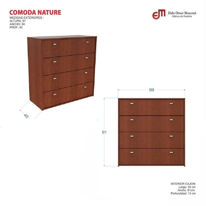 CÓMODA CAJONERO MOSCONI NATURE 4 CAJONES MELAMINA 80966 COLOR BLANCO