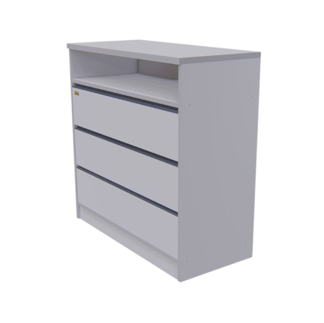 Descripcion Una cómoda funcional y moderna con un diseño simple que se adapta a cualquier dormitorio. Cuenta con 3 amplios cajones que poseen gran capacidad de guardado, donde cada uno cuenta con perfilería de aluminio anodizado y un sistema de apertura con correderas telescópicas que permiten un de...
