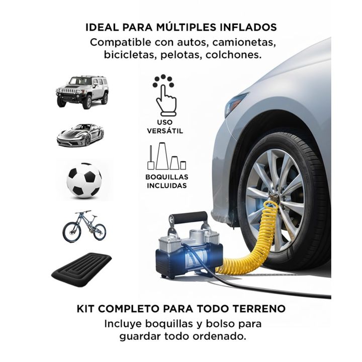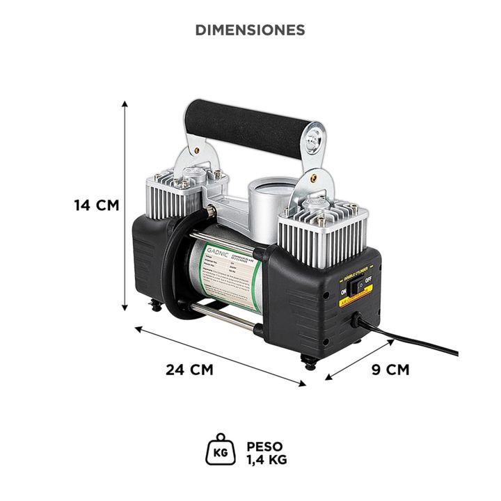 ¡Lleva la potencia contigo! El Compresor 12V Portátil Gadnic, con un flujo de aire de 60 L/min y una presión máxima de 150 psi, es el aliado perfecto para tus aventuras en carretera. Diseñado para uso en buses, camiones, 4x4, vans, autos, y más, este inflador versátil se adapta a todo, desde cauchos...