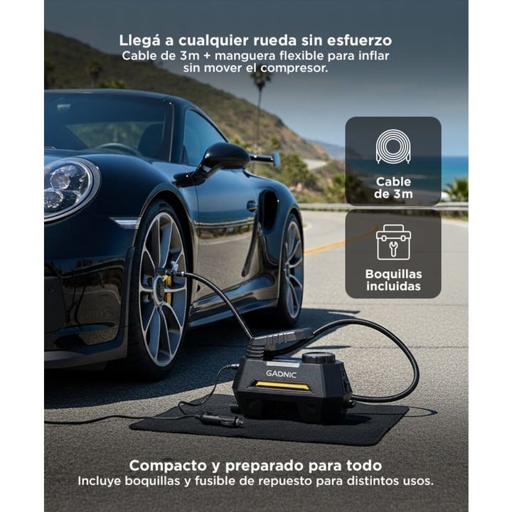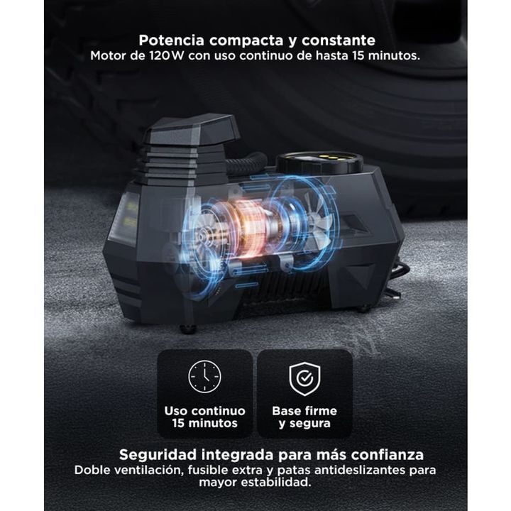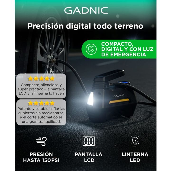 ¡Compresor Inflador de Aire Gadnic IN304! Un clic para cambiar las unidades de presión entre PSI, kPa, BAR y KG / CM; La gran pantalla LCD con retroiluminación blanca facilita la lectura incluso en la oscuridad; Equipado con linterna LED integrada con control de interruptor independiente para uso de...