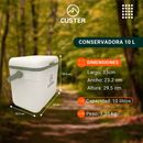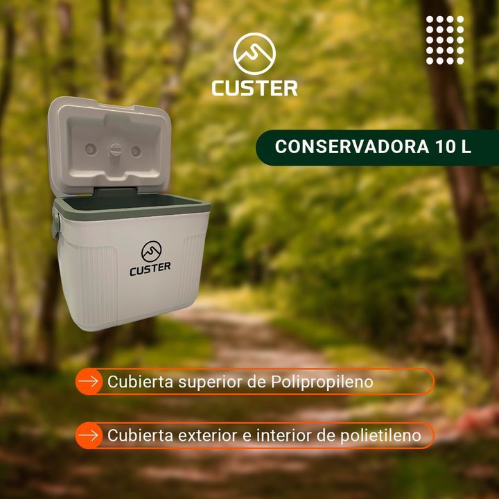 CONSERVADORA PORTATIL CUSTER 10 LITROS. Caracteristicas. Linea Premium Custer- Cierre hermetico que Mantiene frescos los alimentos y bebidas- Superficie plastica con ranuras que facilita el agarre- Asa rebatible con Grip ergonomico- Incluye pack refrigerante- Ideal camping- playa o salida de pesca. ...