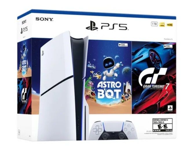 COMBO CONSOLA PLAYSTATION 5 SLIM EDICIÓN ESTÁNDAR + DISCO CON JUEGO COMPLETO ASTRO BOT Y GRAN TURISMO 7 Juega como nunca antes El paquete de consola PlayStation 5 con ASTRO BOT y Gran Turismo 7 (grupo de modelo: slim) ofrece aún más posibilidades de juego. Este paquete de gran valor incluye dos jueg...