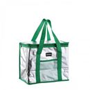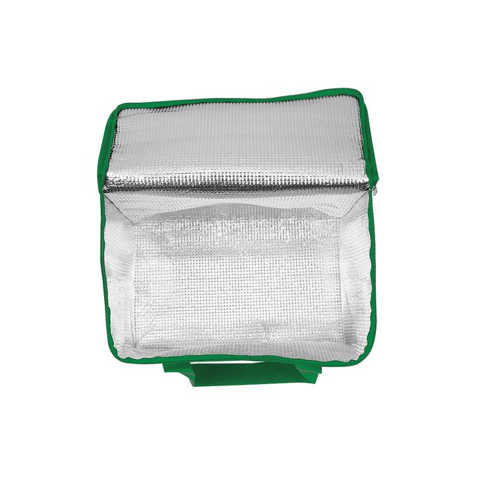 VOLUMEN: 11 litros - MEDIDAS: 32 x 12 x 28 cm - PESO: 0,235 kg » Material: 50% Aluminio + 50% Poliéster Oxford.» Interior acolchado construido en material isotérmico.» Bolsillo delantero de malla.» Dos manijas de transporte.