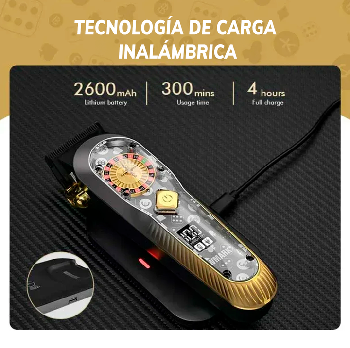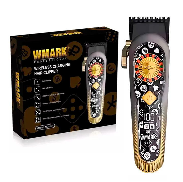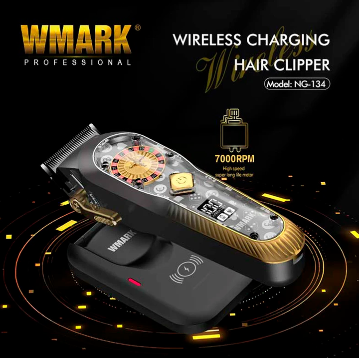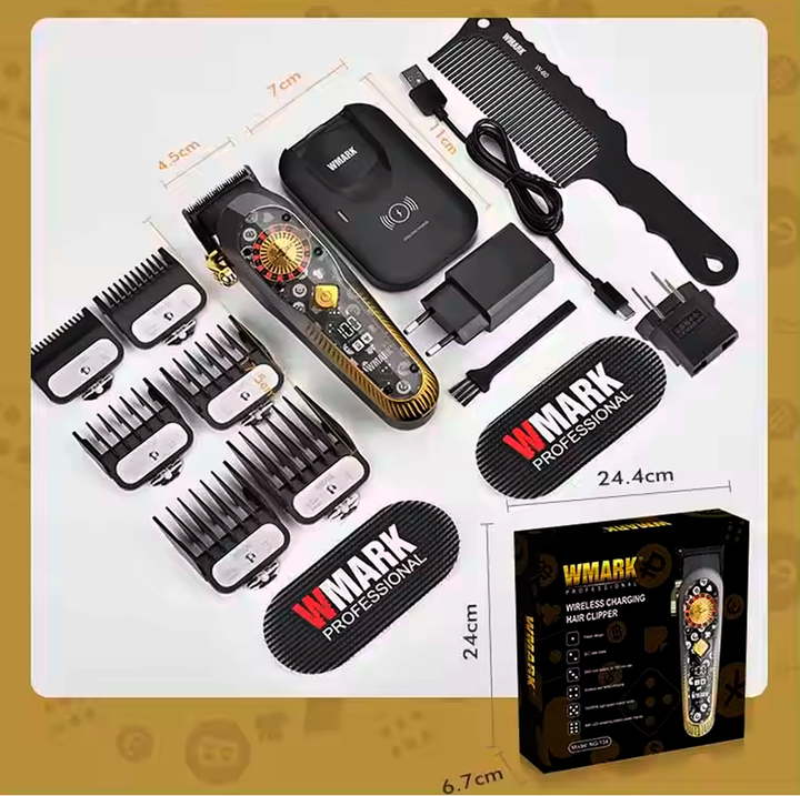 WMARK WIRELESS CHARGING HAIR CLIPPER SKU: NG-134SET Cortadora de pelo recargable profesional • Tecnología de carga inalámbrica, diseño patentado • Hoja fija de alta calidad y precisión para pulvimetalurgia 440C (9CR18) con hoja móvil de cerámica. • Se puede ajustar a cero superposición. • Batería de...