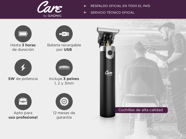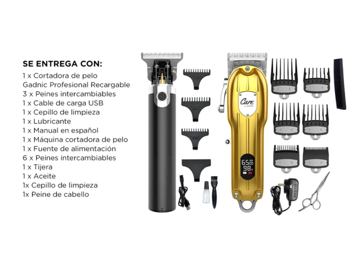 Cortadoras de Pelo Profesionales Gadnic CP140 + Kit Completo de Cortapelos y Recortador de Detalles Gadnic CP140 Ergonómica La nueva cortadora de pelo profesional Gadnic CP140 está diseñada para ofrecer un corte suave, rápido y preciso en todo tipo de cabellos. Sus cuchillas de acero inoxidable de p...