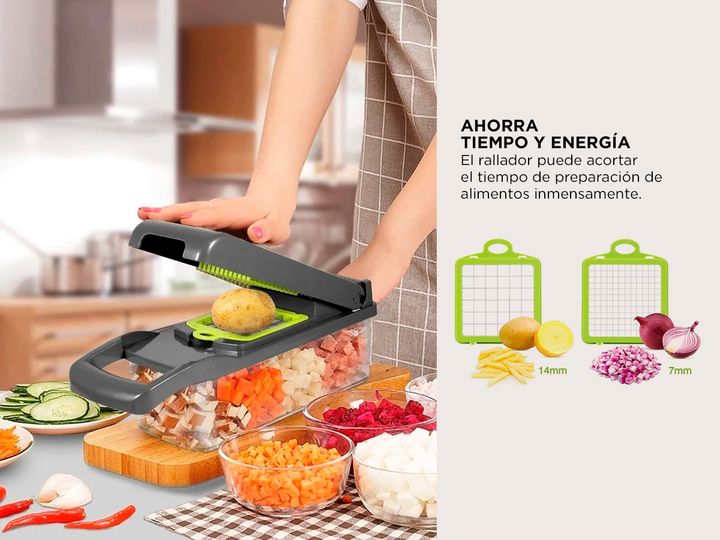 ¡ Gadnic presenta su nueva Cortadora de Verduras Multifuncional ! ¿Estás cansado de pasar mucho tiempo triturando queso y verduras? Gadnic te presenta la solución, nuestro cortador de verduras satisface todas tus necesidades de corte y rallado solo presionando la tapa una vez. Además, tus frutas y v...