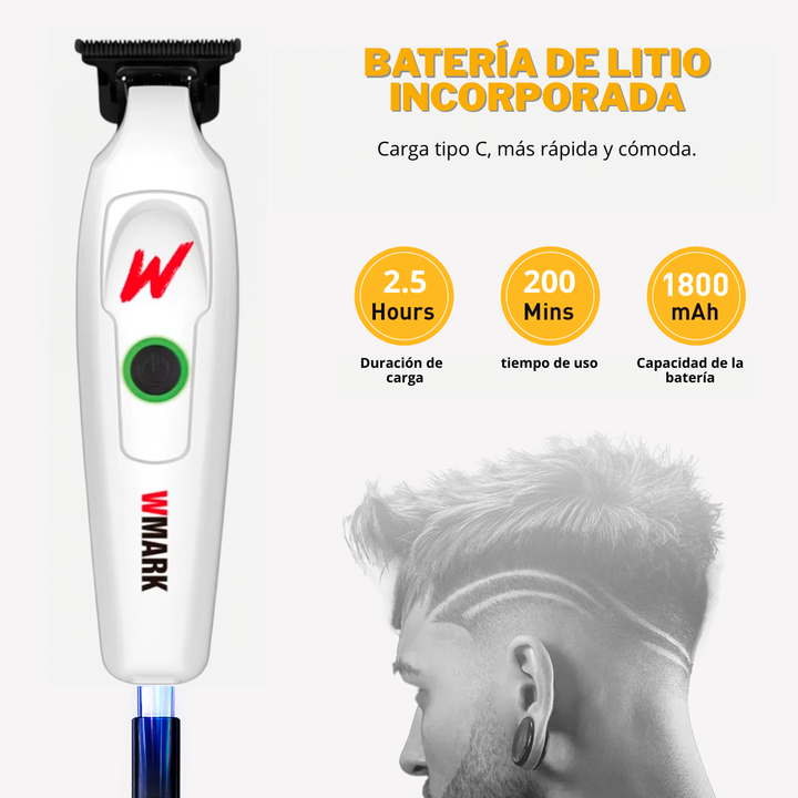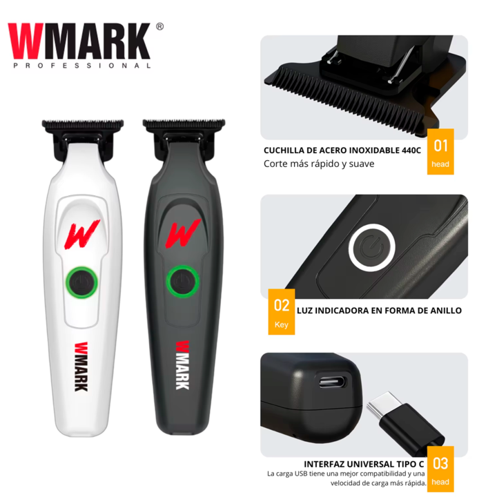 TRIMMER RECARGABLE CARGA POR CABLE USB WMARK SKU BLANCA: NG-7203WHITE SKU NEGRA: NG-7203BLACK la máquina wmark NG-7203 con su diseño ergonómico y potente motor, proporciona cortes de cabello precisos y uniformes. cuchilla de acero inoxidable de alta calidad garantizan durabilidad y un rendimiento ex...