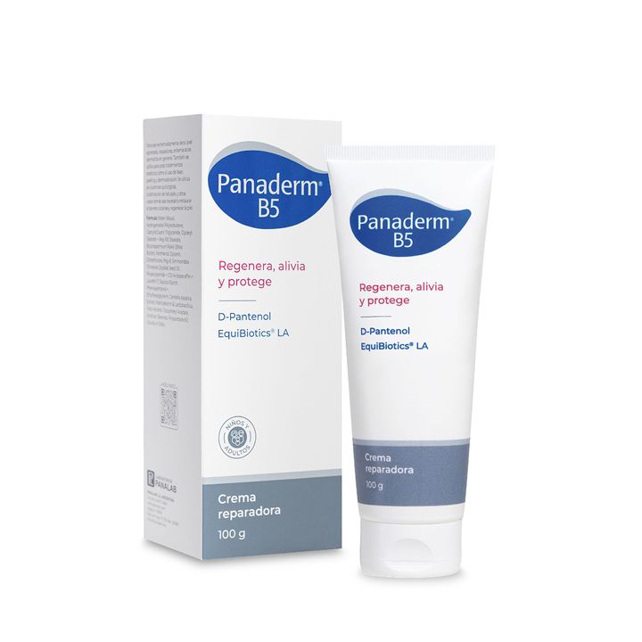 Crema Reparacion Intensiva Panaderm B5 Piel Sensible 100 Gr Textura ligera y de rápida absorción, especialmente indicada para piel sensible. Ayuda a restaurar la barrera cutánea, equilibrar la microbiota de la piel y acelerar su regeneración. Contiene Pantenol (Vitamina B5), un postbiótico derivado ...