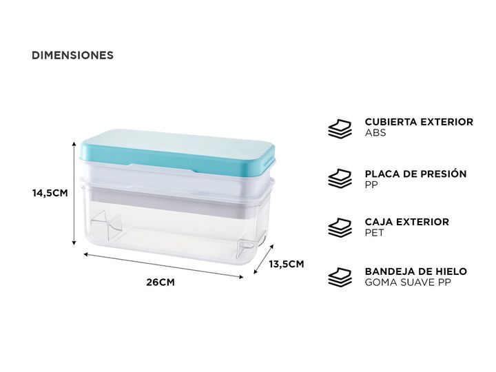 ¡Presentamos nuestra versátil bandeja para cubitos de hielo con recipiente, la solución definitiva para todas tus necesidades de hacer hielo! Diseñada pensando en la conveniencia, nuestra bandeja apilable para cubitos de hielo ahorra espacio valioso en el congelador mientras proporciona un amplio es...