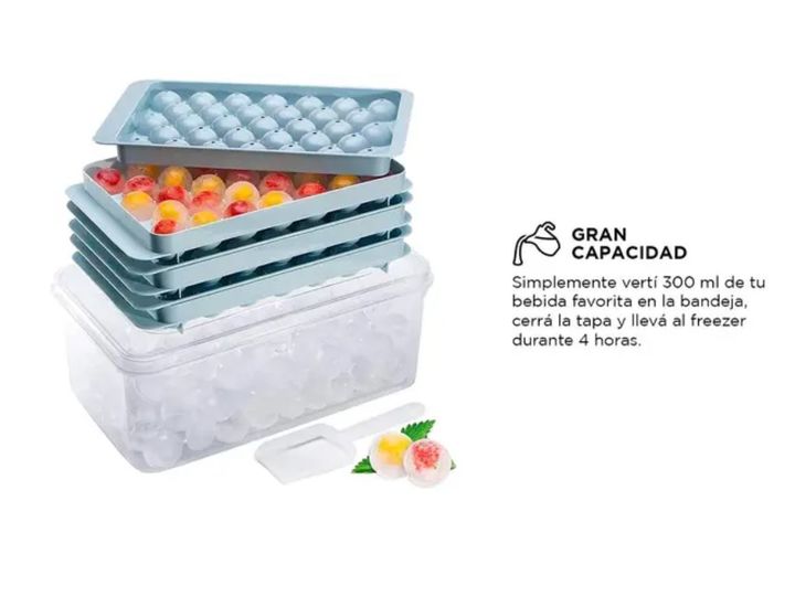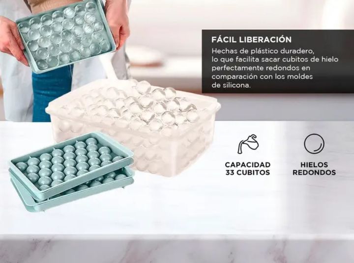 ¡Prepárate para disfrutar de tus bebidas favoritas con la cubetera perfecta! Nuestra cubetera combina conveniencia y estilo con su diseño innovador. ¿Queres hielos redondos para tus cócteles? ¡Esta cubetera lo hace posible! Con su tapa y bandeja, mantener tus hielos limpios y libres de olores es pan...