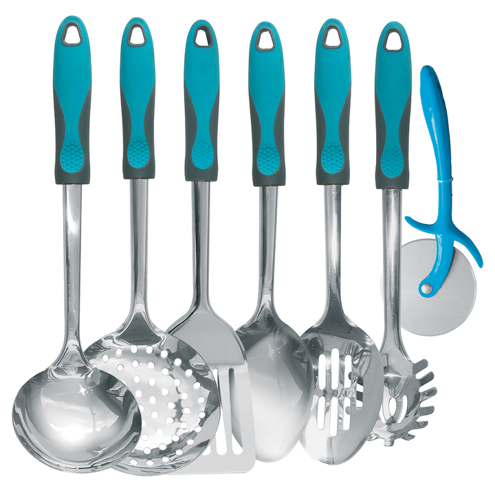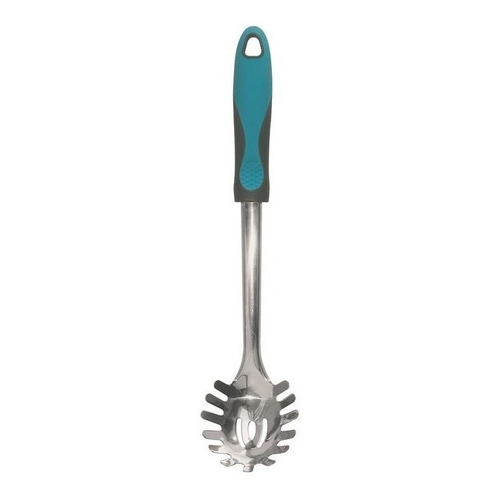 La cuchara para spaghetti de acero inoxidable con mango color azul es un utensilio versatil y elegante para la cocina. Con su diseño duradero de acero inoxidable esta cuch...
