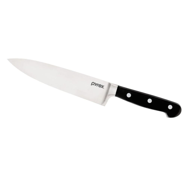 La colección Pyrex Centurión está fabricada con acero inoxidable alemán con alto contenido de carbono y cada hoja de cuchillo es duradera fácil de afilar y fácil de limpiar y posee un borde cónico que permite una mayor eficiencia al cortar.