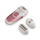 -Cabezales intercambiables: Viene con dos cabezales, un cabezal depilador y un cabezal afeitador, para cubrir diferentes necesidades de depilación y afeitado.