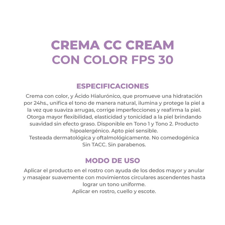 Crema con color, y Ácido Hialurónico, que promueve una hidratación por 24 h, unifica el tono de manera natural, ilumina y protege la piel a la vez que suaviza arrugas, corrige imperfecciones y reafirma la piel. Otorga mayor flexibilidad, elasticidad y tonicidad a la piel brindando suavidad sin efect...
