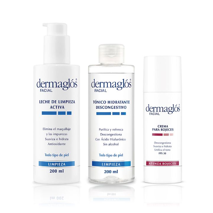 Componentes Leche Dermaglos Limpieza Activa Desmaquilla Hidrata 200 Ml Código: 7793742005039 | SKU: 008028 x 1 uni Tonico Dermaglos Facial Tónico Hidrata Descongestivo 200 Ml SKU: 008051 x 1 uni Emulsion Dermaglos Fps 30 Piel Rojeces Descongestiona 50 Ml Código: 7793742007309 | SKU: 008020 x 1 uni D...