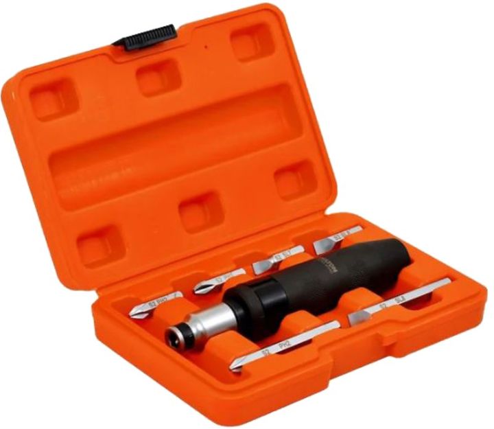 DESTORNILLADOR DE IMPACTO DMP HAMILTON DESTORNILLADOR DE IMPACTO Encastre 1/2. Adaptador 1/2 a 5/16. Puntas de Acero S2 de 35 y 75 mm. Acabado fosfatizado negro. Posee estuche rigido para guardado y transporte 6 puntas Planos: 7,9,11 mm Phillips: 1,2,3 Modelo DMP Garantía 12 meses Origen China