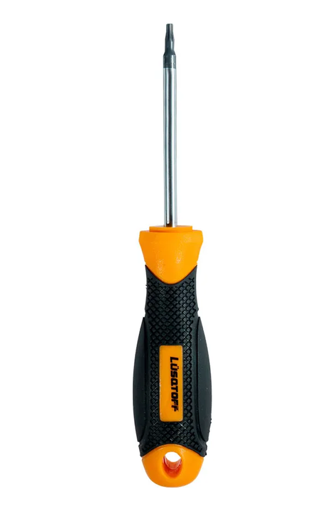 DESTORNILLADOR TORX TEMPER T10 DE 75MM LÜSQTOFF L6704 CON PUNTA IMANTADA L6704 • Punta Torx. • Punta imantada con seguro. • Construido con cromo vanadio. • Mango ergonómico y antideslizante. • Con orificio para colgar. Garantía 6 meses