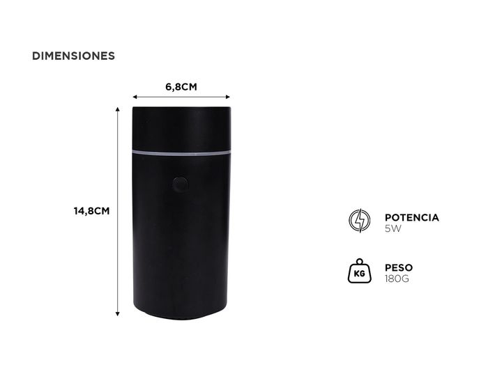 Mejora la calidad del aire en tu coche con nuestro eficiente y portátil Humidificador de Auto. Fabricado con materiales duraderos como ABS y PP, este dispositivo es compacto y ligero, ideal para usar en cualquier vehículo. Con un funcionamiento a través de un voltaje de DC5V y una potencia de 5W, of...