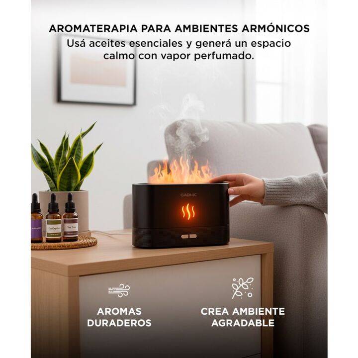 ¡Nuevo Difusor Humidificador Gadnic Con Efecto Llama! Este difusor de aceite esencial es perfecto para aromaterapia ultrasónico, toma la luz y la niebla para crear un efecto de llama realista que se puede ajustar entre una llama suave y una llama feroz. Añade 3-5 gotas de tus aceites esenciales favo...