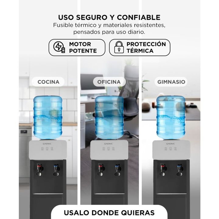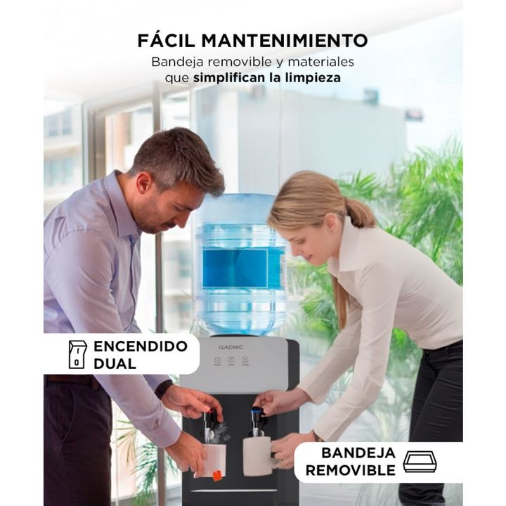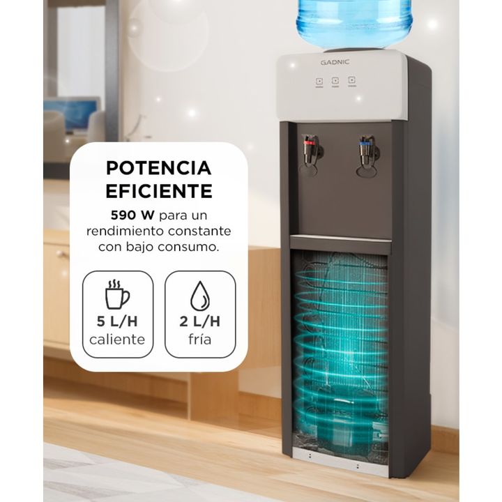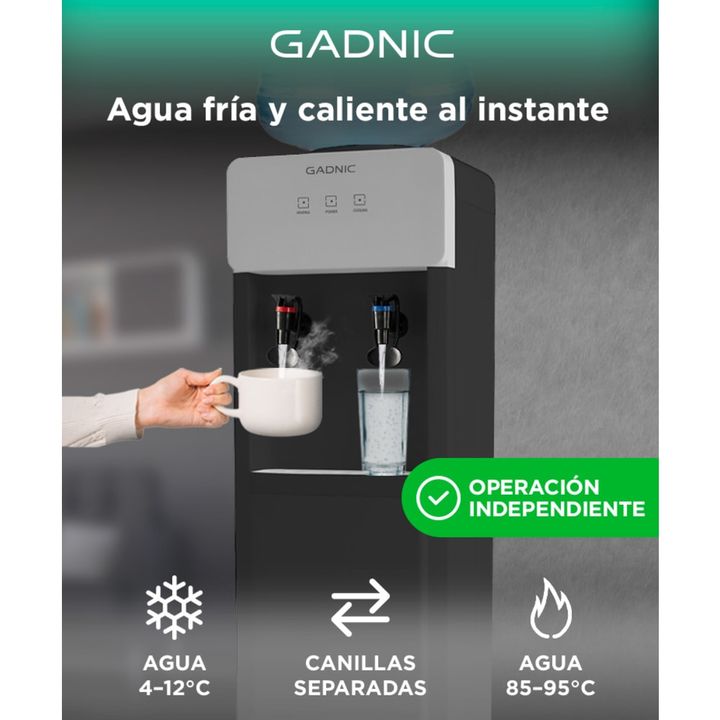 Agua fría y caliente al instante: Temperaturas de 4–12 °C y 85–95 °C, perfectas para cualquier momento del día. Capacidad continua de uso: Hasta 5 L/h de agua caliente y 2 L/h de agua fría, ideal para hogares u oficinas. Diseño práctico y seguro: Bidón superior de fácil colocación, bandeja removible...