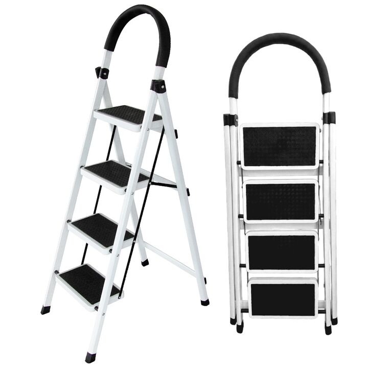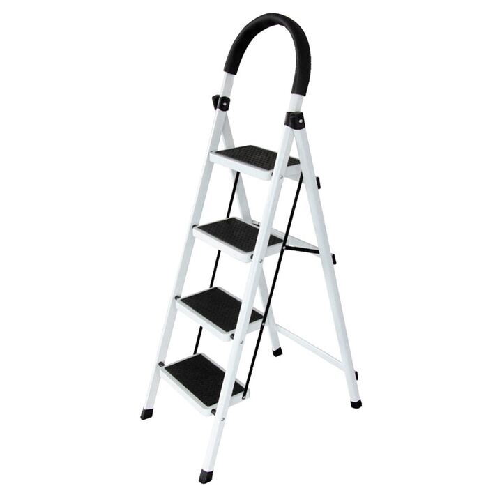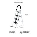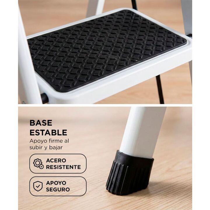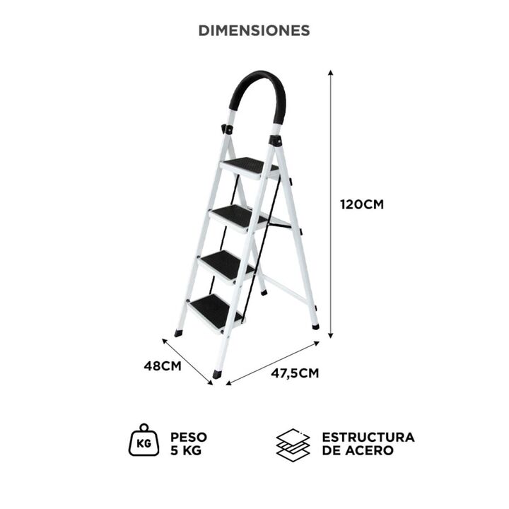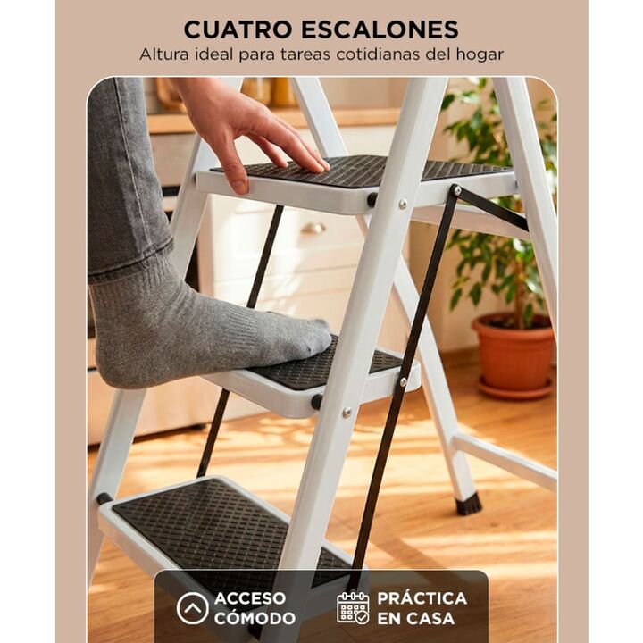 Cuatro escalones para tareas del hogar: La escalera Bron by Gadnic de 4 escalones permite alcanzar estantes, alacenas y zonas altas de forma cómoda en el hogar. Estructura de acero resistente: Fabricada en acero, ofrece una construcción sólida pensada para un uso doméstico frecuente y mayor durabili...