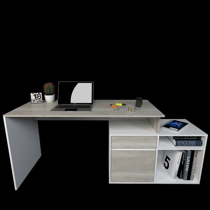 Descripción del producto: 3048 ESCRITORIO con MUEBLE BAJOMueble Funcional de armado en forma de L o el lineal. Un cajón, estante, puerta.MEDIDAS: Profundidad: 0,60 m Largo: 1,40 m Alto: 0,75m: Colores: Olmo Finlandes|Everest Nevado|Everest Olmo Finlandes|Negro - Blanco.: COMPONENTESo Melamina de 15 ...