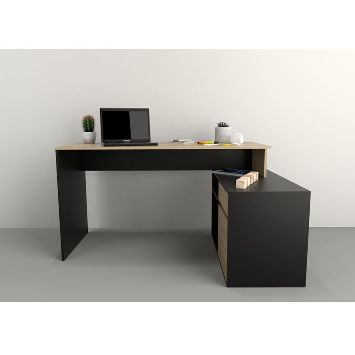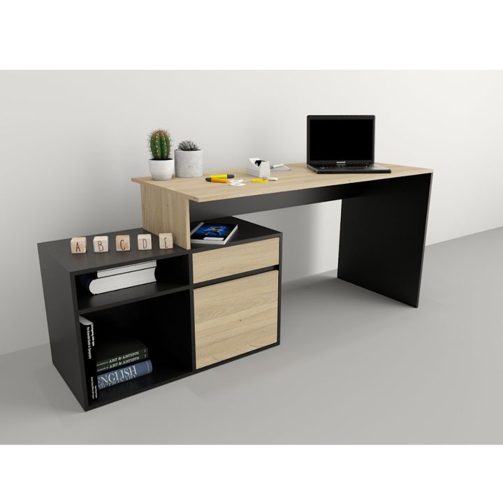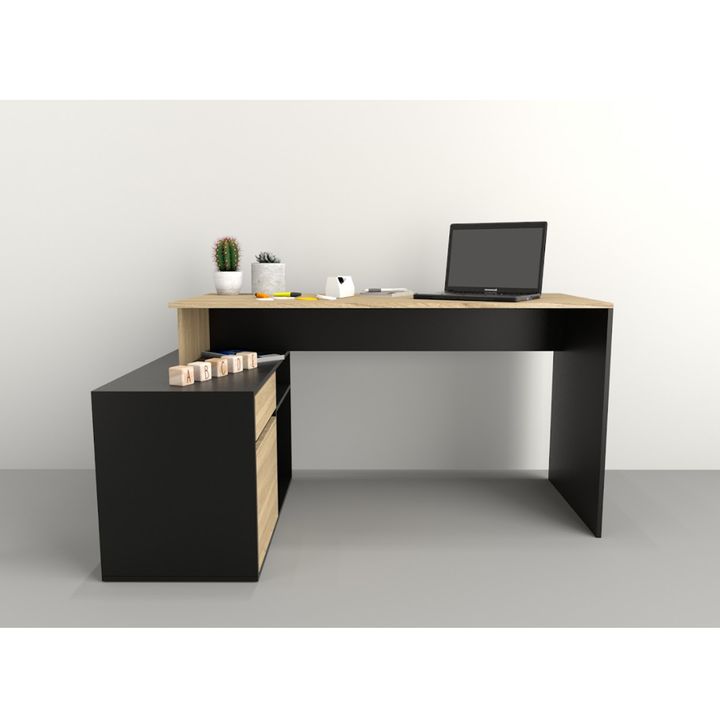 Este moderno y funcional escritorio es perfecto para equipar tu oficina con estilo y comodidad. Con un diseño que incluye un práctico mueble bajo, ideal para guardar tus documentos y accesorios de oficina. Fabricado en melamina de alta calidad y con correderas metálicas, para brindarte el espacio qu...