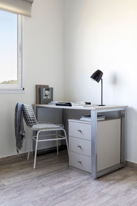 Medidas: 1200 x 600 mm. Melamina: blanca. Caño: alum. Tapa blanca con patas aluminio. La cajonera y la silla no vienen incluidas. Imagen ilustrativa.