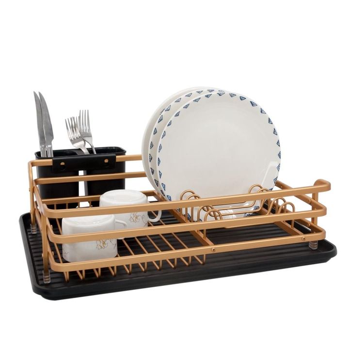 HOGAR ACTUAL ESCURREPLATOS DE ALUMINIO COLOR BRONCE SKU: 142449 El escurreplatos de aluminio color bronce de Hogar Actual es una opción práctica y elegante para mantener tu cocina organizada. Con unas medidas de 40 cm de ancho, 29 cm de alto y 11.2 cm de largo, este diseño compacto es ideal para esp...