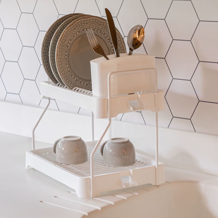 Escurridor Seca Platos con Cubiertero Metaltru Metal Plastico Blanco