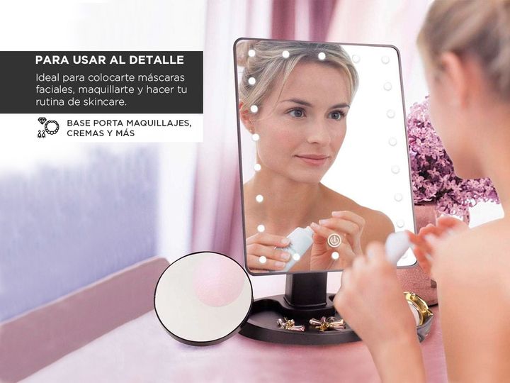 ¡ Nuevo Espejo Para Maquillaje Gadnic EP11 Con Luz Led ! ¡ 16 Luces Leds ! este espejo de maquillaje con luz LED tiene 16 luces LED ajustables. Las luces controladas por el interruptor del sensor táctil, son naturales y suaves, brillantes pero no deslumbrantes y protegen sus ojos. Las luces LED lo a...