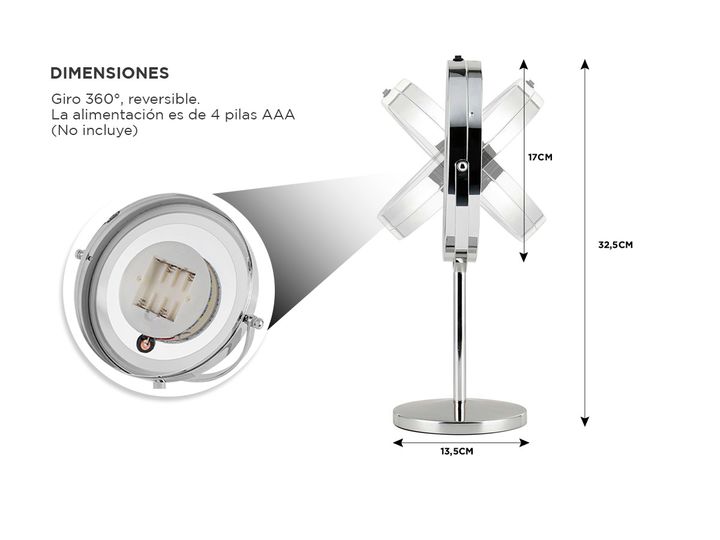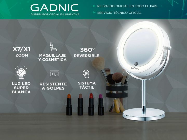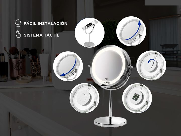 ¡GADNIC presenta su nueva línea de espejos de cosmética profesional! Éste nuevo espejo de maquillaje profesional con pie para ayudar al cuidado diario de la piel y la aplicación de maquillaje. Dispone de una superficie de 7 aumentos. La iluminación integrada sirve para una mejor precisión al momento...