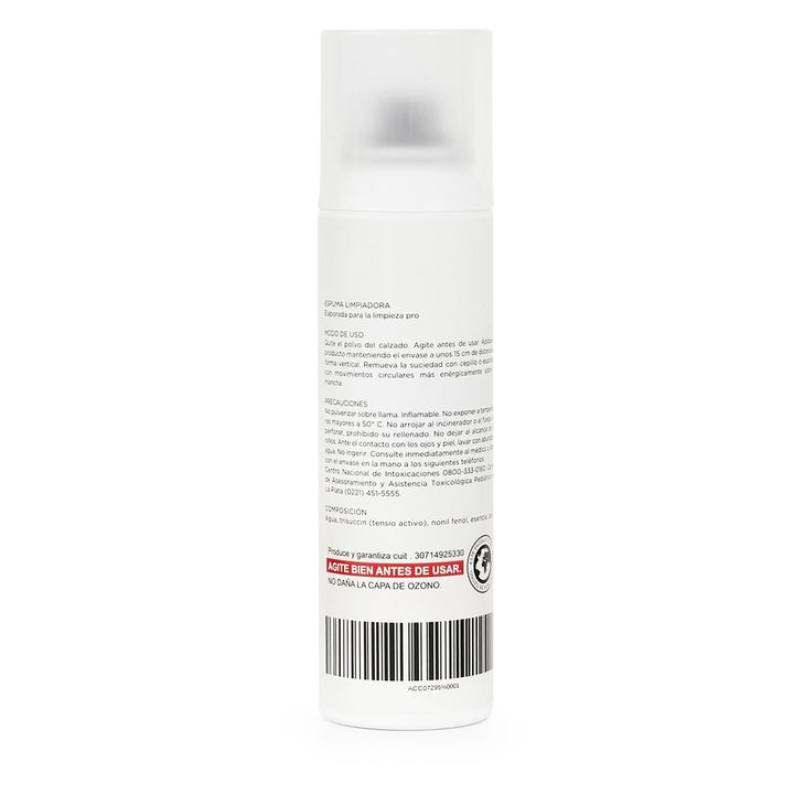 Espuma limpiadora y desengrasante para calzado ,cuero ,cuerina ,vinilo y mesh. Modo de uso: aplicarlo con esponja o paño limpio en seco. Dejar al aire libre durante 10 min. No exponer al sol. Beneficios: Limpia y desengrasa el cuero del calzado. - Contenido neto: 180 cc - Codigo: UACC07295