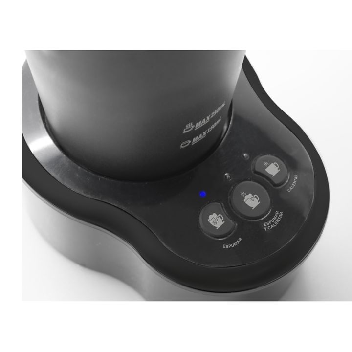Detalles - Capacidad maxima 250 ml. - Espuma en 90 segundos. - 600W de potencia - Jarra desmontable. - Accesorio espumador completamente desmontable. - Corte automático de temperatura. - Recipiente antiadherente. - Tapa transparente. - 3 Funciones: ESPUMAR / CALENTAR / ESPUMAR Y CALENTAR. - Piezas d...