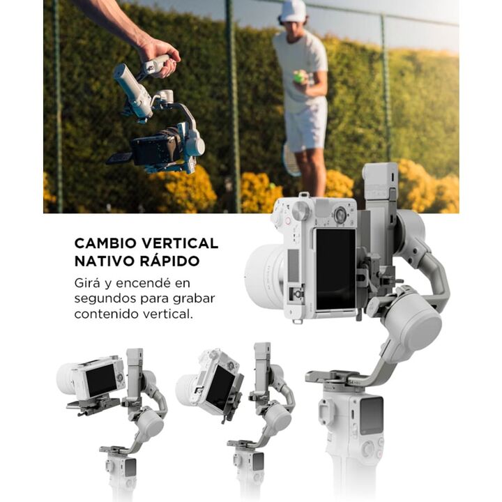 Descubrí el DJI RS 4 Mini, el estabilizador compacto y ligero diseñado para llevar tus producciones al siguiente nivel! Con su bloqueo automático de ejes y equilibrio preciso gracias al revestimiento de Teflon™, configurar tu equipo nunca fue tan rápido y sencillo. El seguimiento inteligente y la co...