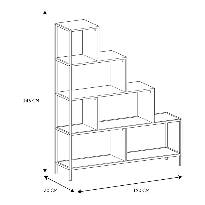 ESTANTERIA ATMA HOME EDISION NEGRO/MADERA 146CM ESCALONADA TIPO INDUSTRIAL La Estantería Edison Escalonada de ATMA HOME es una opción moderna y funcional para organizar y decorar tus espacios. Su diseño escalonado tipo industrial en combinación negro/madera aporta estilo y originalidad, ideal para e...