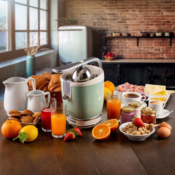 EXPRIMIDOR ELÉCTRICO ARIETE VINTAGE MODELO 413 VERDE 85 W Marca:Ariete Código: PA-EX413VE Un jugo de naranja recién exprimido para desayunar es ideal para recargar tus reservas de vitamina C, minerales y energía. Con el exprimidor eléctrico Vintage de Ariete, tendrás un exprimidor potente y silencio...